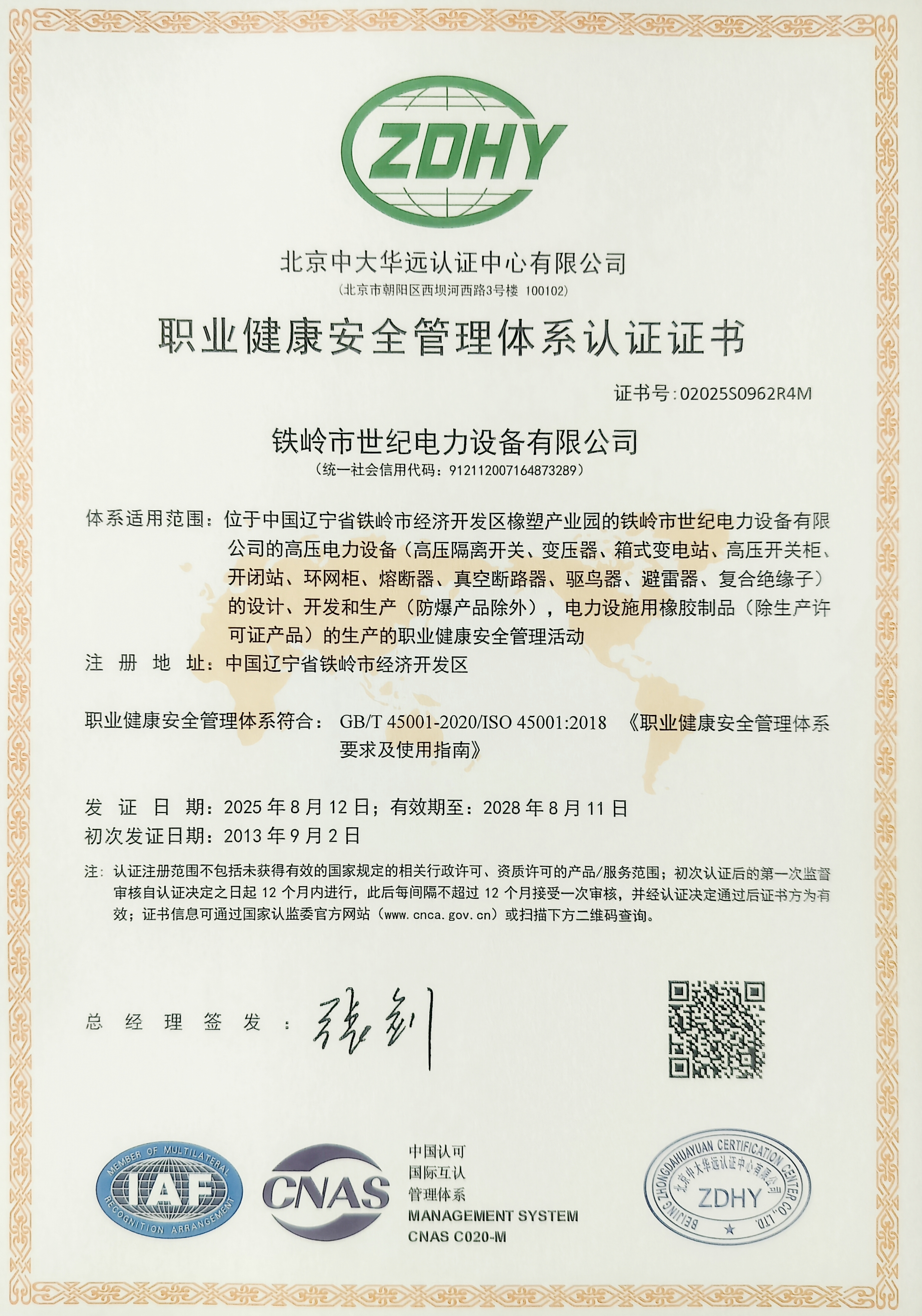 鐵嶺市世紀電力設備有限公司是集科研開發(fā)、生產制造、用戶服務于一體的國家高新技術企業(yè),始建于1999年,位于鐵嶺經濟開發(fā)區(qū),占地面積5萬余平方米,建筑面積2萬余平方米。主要從事國家電網配套戶外高低壓隔離開關、電力電纜、變壓器成套裝置、高低壓開關柜、箱式變電站、絕緣子等產品的研發(fā)、生產和銷售。公司現有國家發(fā)明專利6項、實用新型專利9項,公司通過了ISO9001國際質量管理體系認證、ISO14001環(huán)境管理體系認證和ISO 45001職業(yè)健康安全體系認證。